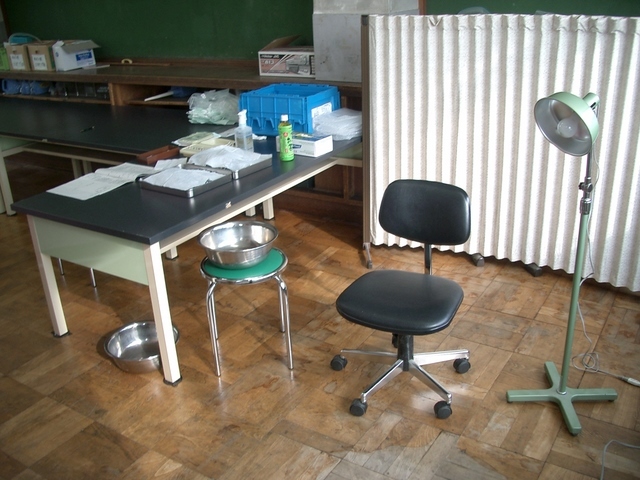 今年は、いつもと違い理科室にパーティーションを置いて行いました。